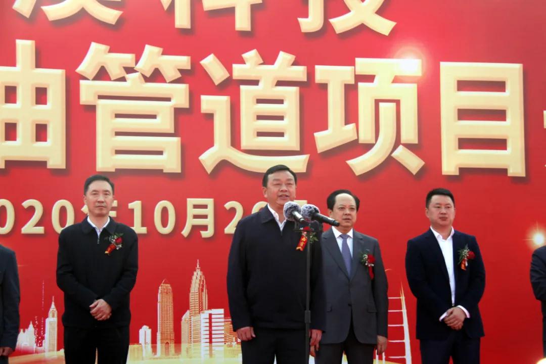 中国化学工程第九建设有限公司总经理杜强代表施工单位发言,表态将全力以赴、不辱使命,科学管理,精心施工,不畏艰险,顽强拼搏,优质、安全、高效地完成管道建设任务。