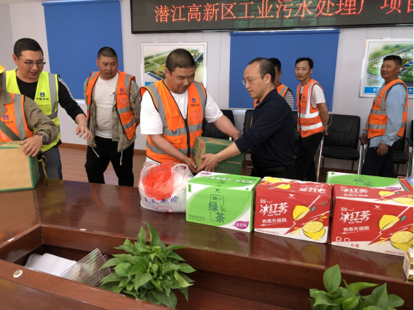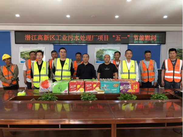 在“五一”国际劳动节来临之际,4月29日,市高新投公司副总经理金克诗,总工程师昌海峰一行前往潜江高新区工业污水处理厂项目施工现场,亲切慰问一线工人并送上节日祝福。