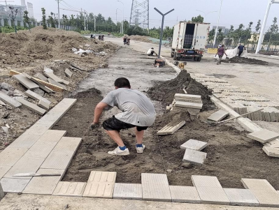 1.汉南河以东园区物流通道项目1号路主体已完工,首尾两段连通广泽大道东延线已完成路缘石铺装,正在进行人行道垫层及彩砖铺设。