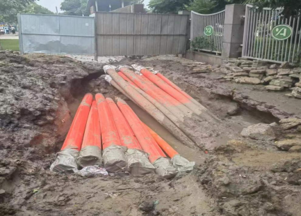 2.中能110kV主备供电源线路项目永安药业段已完成电缆入地顶管施工,目前正进行电缆井施工。