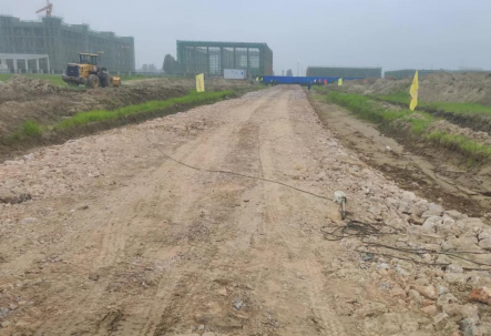 4.阿科力东侧物流通道项目已完成路基整平及软路基段压实,正在进行块石铺设及排水管道安装。