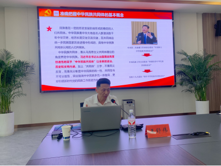 活动中,王舒伟副主任以习近平总书记对新时代党的民族工作指示批示精神作为前瞻指引,通过生动的历史案例,围绕“中华民族共同体”的核心概念,深入浅出地阐述了铸牢中华民族共同体意识的理论渊源、深刻内涵、基本任务及根本保证,引导大家牢固树立休戚与共、荣辱与共、生死与共、命运与共的共同体理念。