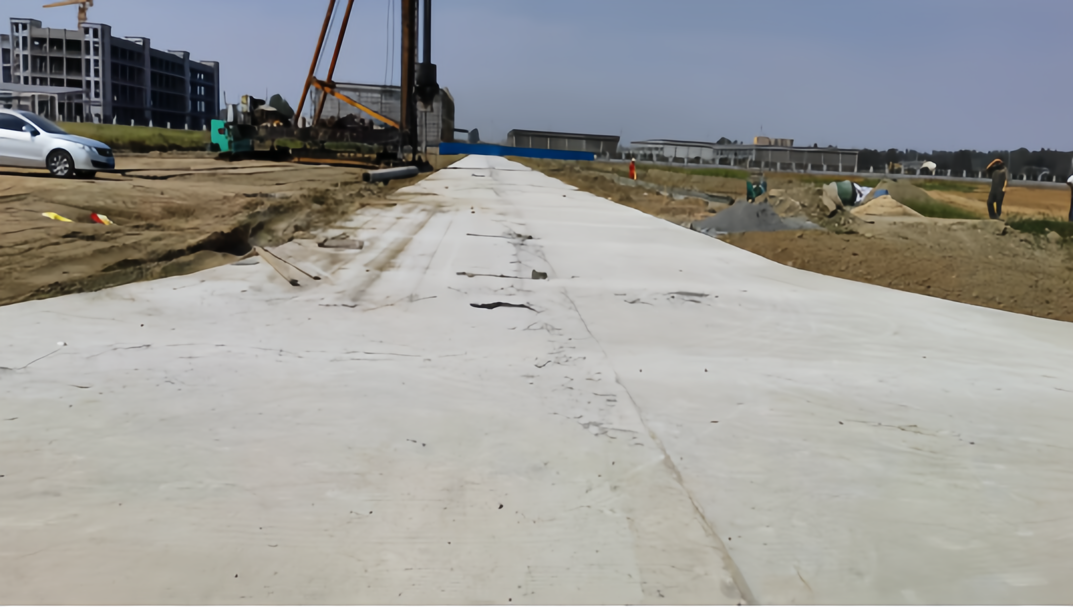 4.盐化路升级改造项目已完成加宽断面水稳层铺设及路肩填土施工,正在进行排水沟施工。
